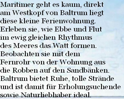 Preis für 2 Pers: jede weitere Pers.5€ zusätzlich zzgl. Kosten der Endreinigung für die 1.Nacht:60 € Wäschepaket b.B.: 15,00€/1Pers(2 Handtü.,1Dusch tu.,1Dusch- Kurtaxe wird gesondert gezahlt |